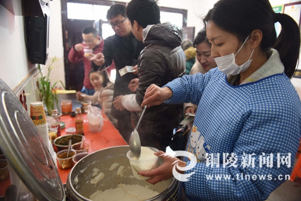 游客在排隊(duì)購(gòu)買大通豆腦。